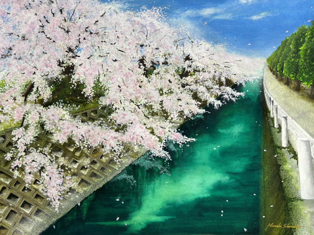 住吉方面から赤迫に向かって眺めた線路沿いの桜です。